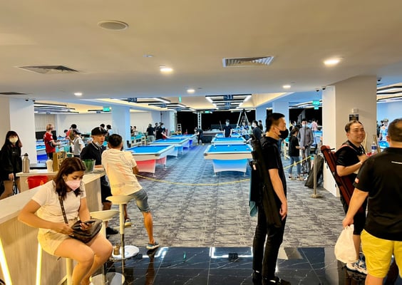 僕らの行ったレストランはホテルの向かいにある大きなショッピングモールの中にあり、会場となるビリヤード場はその隣のショッピングモールの4階にあります。ショッピングモールが2つ繋がっている超巨大ショッピングモールをイメージしてもらえるとわかりやすいかもしれません。