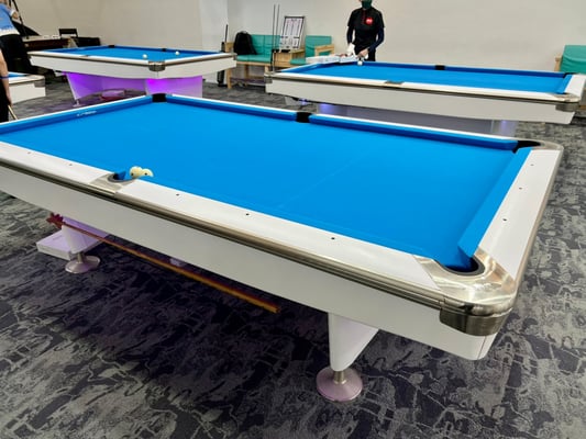 テーブルは何か分かりませんが(BD注:「アレックス」または「アイレックス」と呼ばれるブランド。日本にも以前同ブランドのテーブルが入ってきていた)、クロスはCPBA、ボールはダイナ スフィアです。