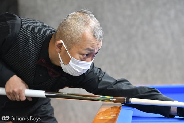 「今年は日本海オープンとこのプロ3Cトーナメント、2大会で初優勝が出来て嬉しいです。今日はツキもありましたけど、テーブルコンディションも僕自身のコンディションも悪くなく、まずまず良いプレーが出来たと思います。キューを変えた(MUSASHIをJBSに変更)のでここのところよく練習してましたし、海外遠征にも行き続けていて、向こうで色々な経験を積んだこともプラスになったと思います。竹島プロとは全関東の決勝戦でも撞きましたし、ベトナムにともに行ったり、今年よく一緒になっています。たまたま今回も僕に運勢が向いたので勝てたと思います」
