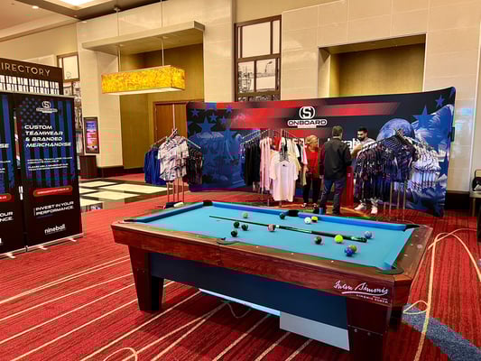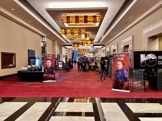 去年は2階でしたが、今回は1階です。ホテルの部屋から5分以内に着くのでかなり楽です。いつかのUSオープンではホテル内を20分以上歩かないといけなかったのでここは重要なポイントです。今年は用品ブースが増えて5、6軒出ています(下の方に画像があります)。