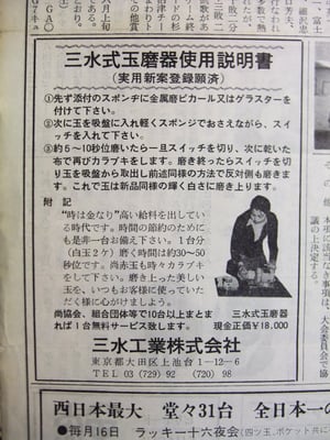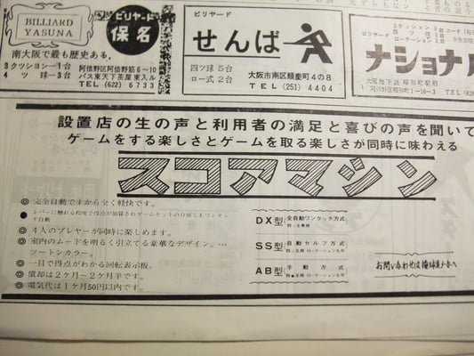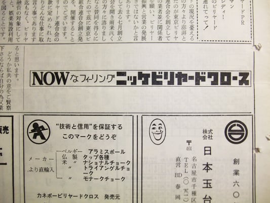 前回に引き続き【シリーズ・日本ビリヤード新聞】の番外編として、当時の紙面に載せられた広告を紹介いたします。