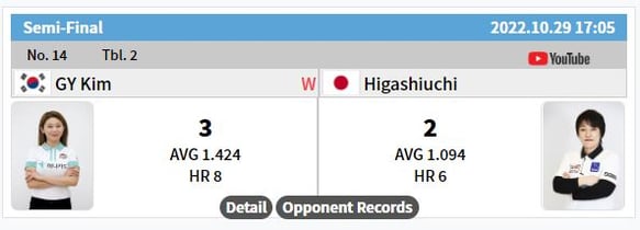 金佳映(キム・ガヨン)と対戦。