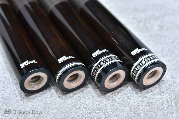 このシャフトの特徴を一言でまとめるのは難しいですが、『素晴らしいサウンドとショットフィーリングを味わわせてくれるシャフト』でしょうか。カーボンシャフトが持つ性能の絶対値には及びませんし、もともとその方向は目指していないですが、プレーアビリティは申し分なく、普通にプレーしていて不足を感じるところはありません。むしろ当たりのノーマルシャフトの2~3割増の性能は秘めていると思います。撞き方次第ですが、全体的にトビが少なくカーブがあまり出ないというところや、ボールが撞点やストロークに忠実な動きをしてくれるところも良いノーマルシャフトっぽいと思います。これは往年のカスタムキュー好きの方も気に入っていただけるんじゃないかなと思います。もちろんラジアルピンのキューであればハオキュー以外にも付くのでぜひ試していただきたいですね。
