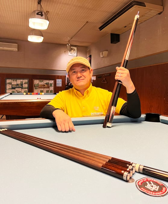 僕は以前カーボンシャフトも使っていたんですが、押しすぎたり引きすぎたり、パワーがありすぎるためにキューが出なくなったり、ボールの動きがすごくて目が追い付いていかないということもありました。でも、『OWLオリジナル トリファイドメープルシャフト』は性能的に極端なところがなく、イメージ通りのボールの動きをしてくれるので気持ちよくキューが振れています」
