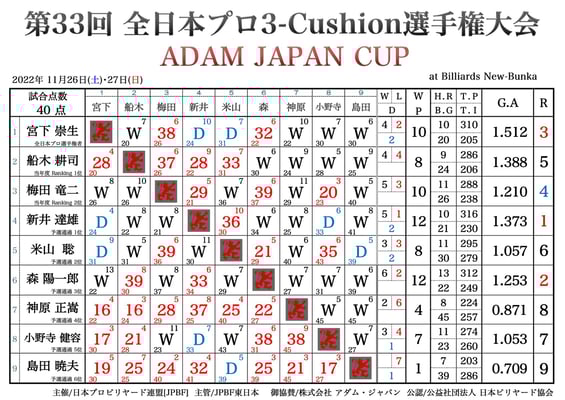 アベレージ差で新井プロが優勝。