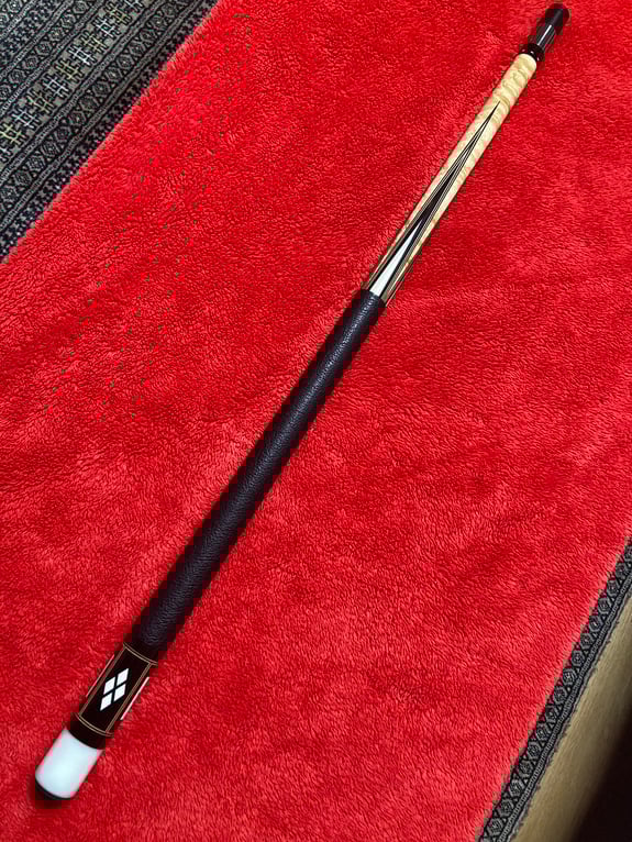 自ら製作したキューでした。