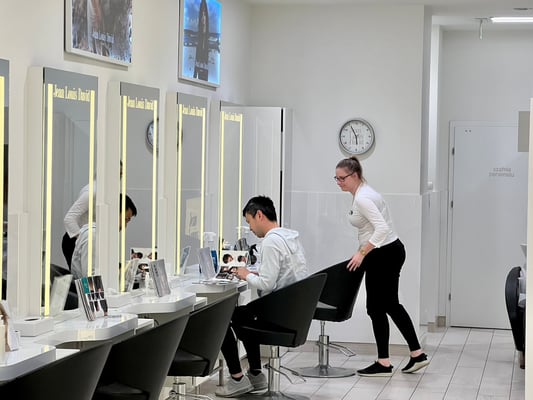 買い物の前に大井プロがまず向かったのが恒例の美容室。今回もアメリカの試合を転戦してきた後にポーランド入りしているので、髪が伸びて気になっていたそう。海外で髪を切る……僕にはまだハードルが高そうです(笑)。