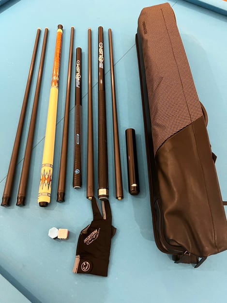 A4:プレーキューの『IKON』はバットが柔らかく感じられて、REVOシャフトと合わせてもとても手球のコントロールがしやすいところが気に入っています。ブレイクキューの『BK RUSH』はとにかくパワーがあり、グリップの「スポーツラップ」はインパクトで力を伝えやすいところなどが好きです。また、ジャンプキューの『AIR RUSH』は、バットを分割してもしなくてもどちらも先球も手球も暴れず、綺麗に飛びます。ロングジャンプもショートジャンプも正確性がとても優れていて気に入っています。