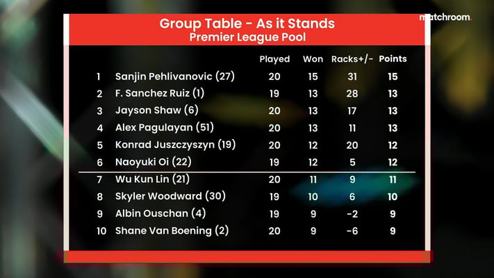 🦁 Alex Pagulayan up into 2nd with a 5-3 win over Naoyuki Oi! Getting very close at the top now..#PremierLeaguePool pic.twitter.com/lylmclnMWV