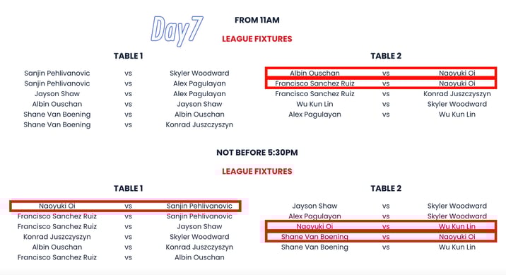 Day6とDay7は10名での「二次リーグ」。