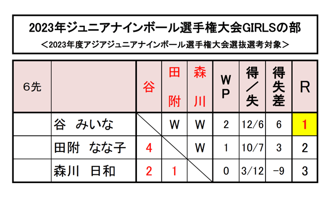 『ジュニアナインボール選手権大会GIRLSの部』には、