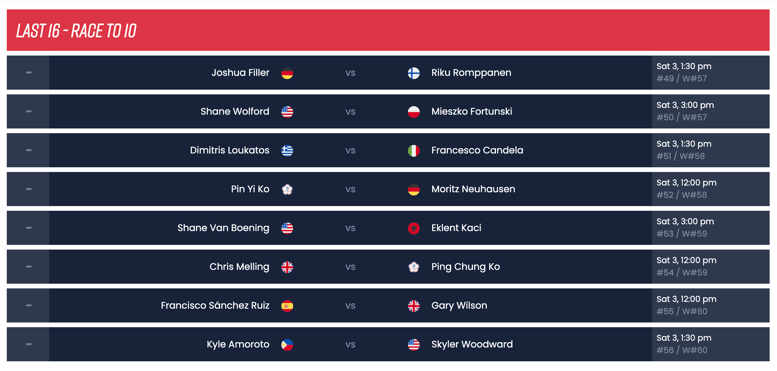 フォーマット:256名ダブルイリミネーション(9ラック先取。※敗者側8)→64名シングルトーナメント(10〜13ラック先取)