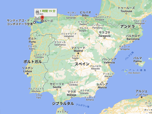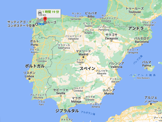 ここまでで丸1日かかり、そこからスペイン国内線に乗って1時間ほどで西の端、サンティアゴ空港へ。そして、最後はタクシーに乗ってルーゴまで1時間。合わせて37時間の道程でした。