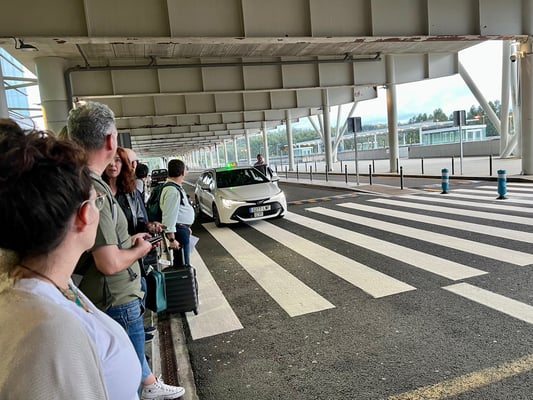 6枚目:サンティアゴ空港到着。タクシーは争奪戦でした。ここから1時間山間部を走って開催地のルーゴへ