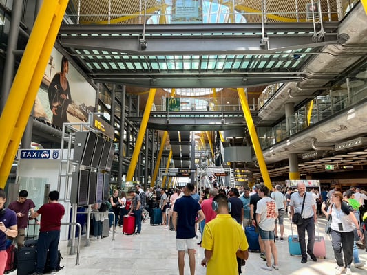 まずは自宅のある大阪・関西空港から羽田空港まで国内線。そこで大井直幸プロと合流して、11時間半かけてカタール・ドーハ空港へ。乗り継いでスペインの中央にあるマドリード空港まで7時間半。