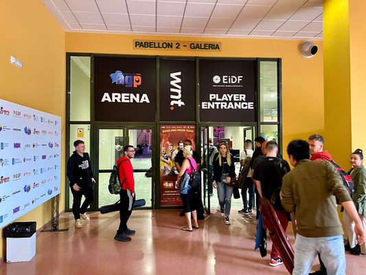 会場はルーゴ国際会議場という所で、宿から徒歩15分ほど。歩いてちょうど良い距離なのですが、高低差が80m近くあるみたいでなかなかきつい坂道です。行きは良い良い帰りは……しんどいです(汗)。公式ホテルに宿泊しているプレイヤーは送迎バスで来ていました。