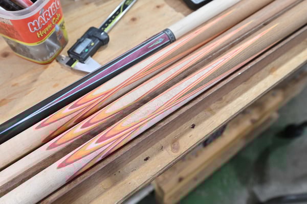 猿山:当初から「Far Eastならでは」と感じていただけるような個性のあるキューを作ることを意識してきました。もちろんお客様のニーズを形にすることがまず優先されますが、その範囲内で他社にはないハギや色合いを積極的に表現したいと思っていますし、それができるのがうちの強みだと思います。「メイドインジャパン」を感じられる雰囲気で、もっとハギの可能性を追求したり、新しい材料を使ったり、今までに見たことのないようなハギとインレイの組み合わせを編み出して、これまでにないキューの表現を創りたいと常に考えています。