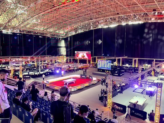 今回はスタンド席があるためチケット形態が異なっているそうです。スタンド席が2,000円台、プレイヤーズエリア(テーブル至近)に入れるチケットが5,000円台とのこと。どうせならプレイヤーズエリアで見るべきだと思いますが、やはり現地の感覚からすると値段が高いのかスタンド席の方が観客が多い印象です。