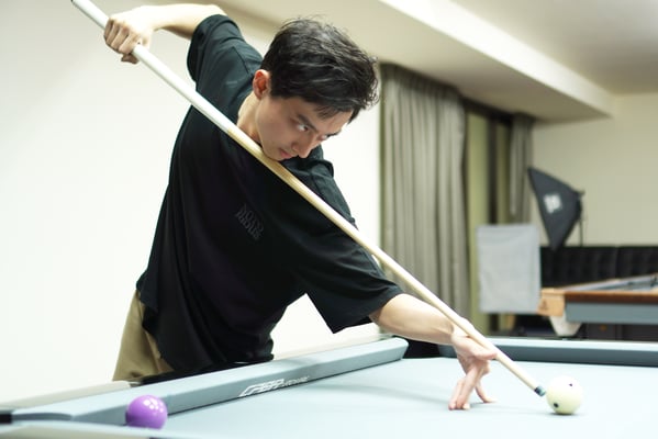 Y:12歳からです。父がビリヤードをプレーしていたので、5~6歳の時からビリヤードに興味がありましたが、当時はまだ背がテーブルに届かなかった。父はプロではなかったですが、最初のコーチです。