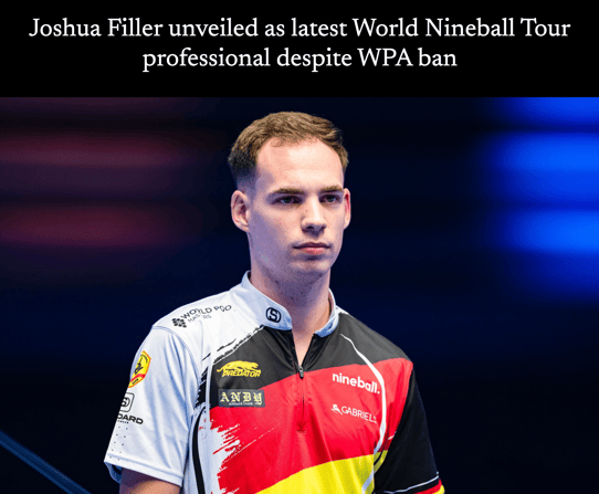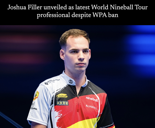 WPA(世界プール連盟)は、2024年3月以降に“非公認イベント”(WNT.のこと)に出る選手の、WPA大会への参加禁止処分を計画している。それにもかかわらず、ジョシュア・フィラーはWNT.プロとなった。