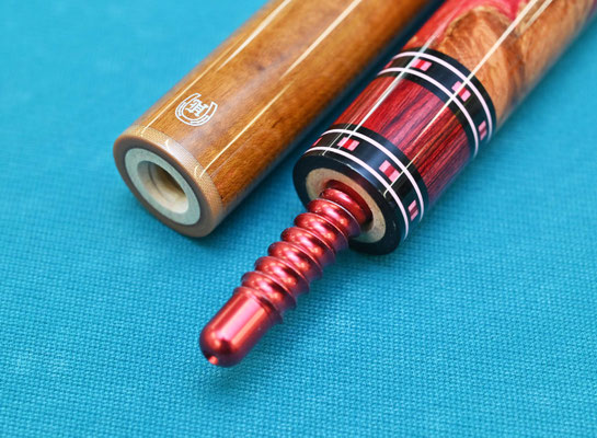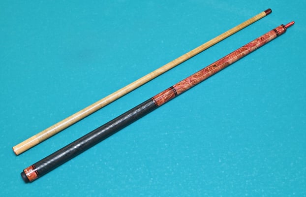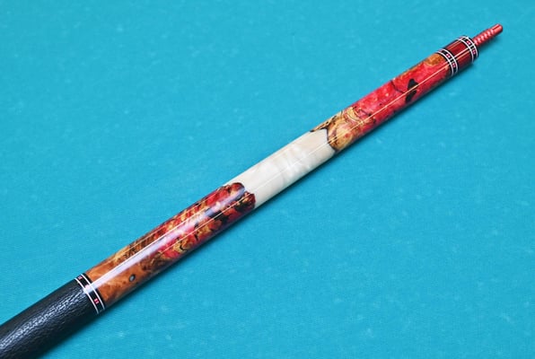 プレーキュー:アンボイナバール スタビライズウッド+エポキシ樹脂。シャフトはトリファイド ローロースト、タップはNAVIGATOR ブルーインパクトSIGMA H