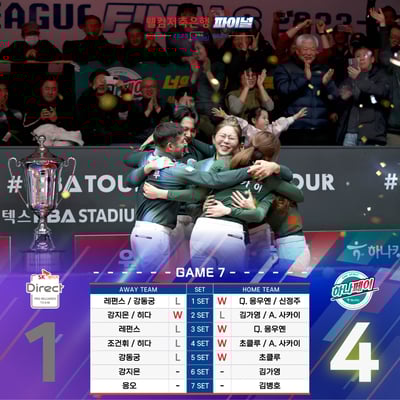 ↑ Hana Card優勝への最後の2マッチ。界文子出場。相手チーム(SKレンタカー)に肥田緒里恵の姿も