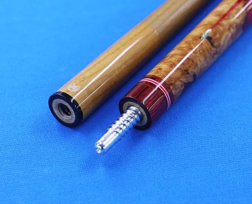 プレーキュー:メイプルバール+エポキシ樹脂。シャフトはトリファイド ローロースト。タップはNAOLLY M