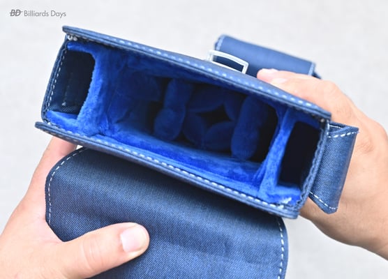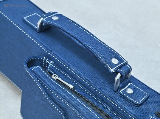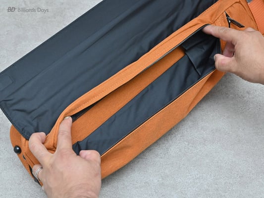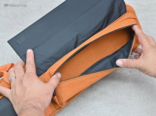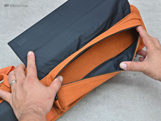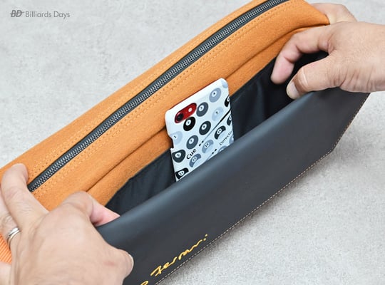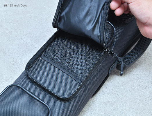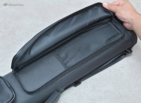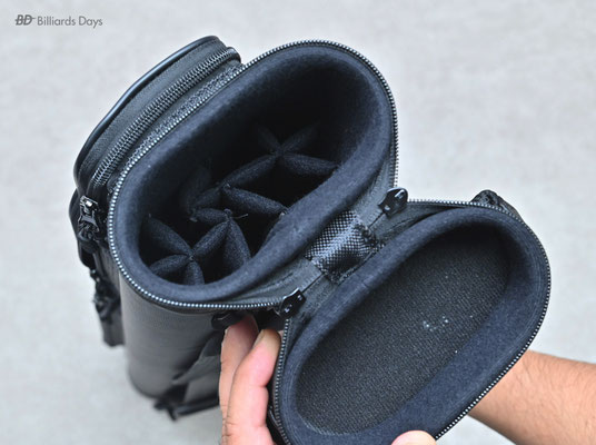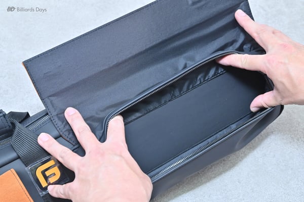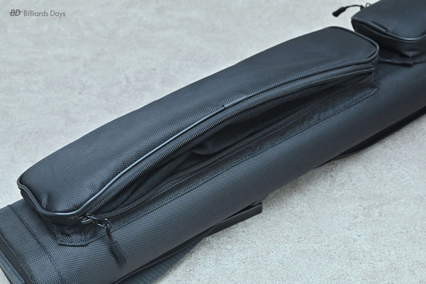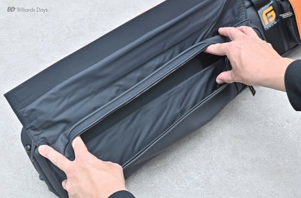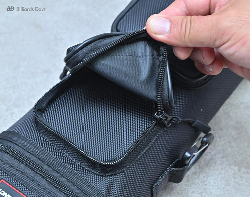 キューの収納は本体側面のジッパーを