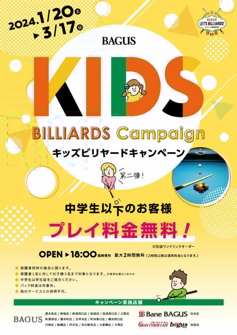『キッズビリヤードキャンペーン』を実施中。