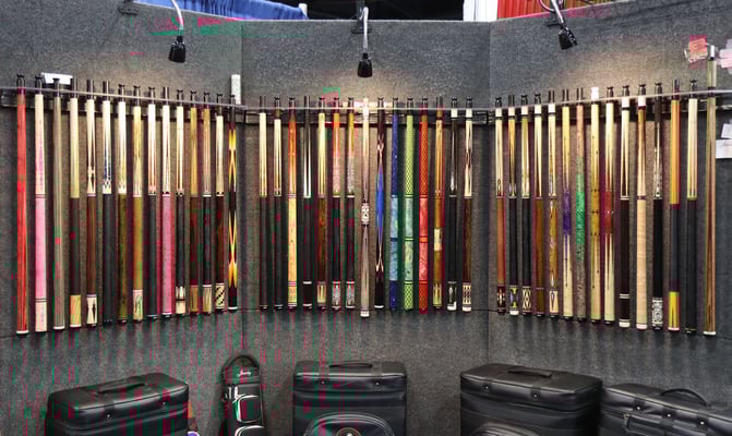 2=お手頃価格の小規模メーカー、Carl Giuli Custom Cues。エキスポ土産にキュー1本と頼まれたらコレだった