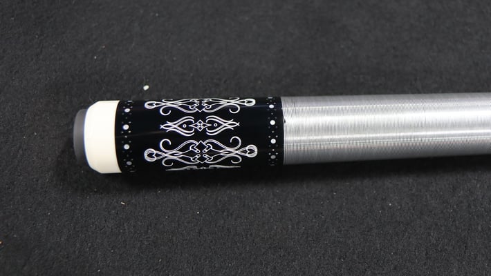 2=Barnhartのグリップは何とアルミワイヤ巻。キュー尻のエングレーヴィングはShelby Williamsの手によるもの