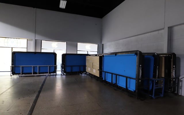 試合終了後のテーブルは脚を外してキャスターで移動