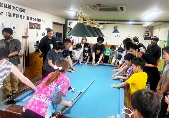 「今回は過去最高となる40名(見学者含め)での開催となり、これまでで一番盛り上がりました。参加者の内訳は小2~高2までとその保護者で、小学生が半数を占めていました。初めて参加された方が5組10名いて、初めてビリヤードをする子供が5名もいました。