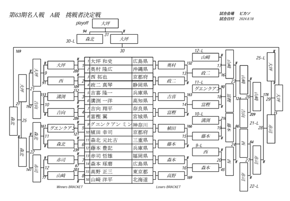 大坪選手がW-169で勝利。
