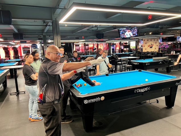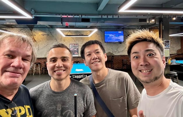 今回、アメリカのビリヤード場で行われる、いわゆる「ハウストーナメント」に初めて出場しましたが、とても良い経験になりました。ましてや『USオープン』直前の前哨戦とあって、世界のトップランカーも多数参加する大会。特設会場での大会のように台間は広くないので、いつもよりかなり近い距離の中で強豪たちが鎬を削る様はまさに眼福でした。