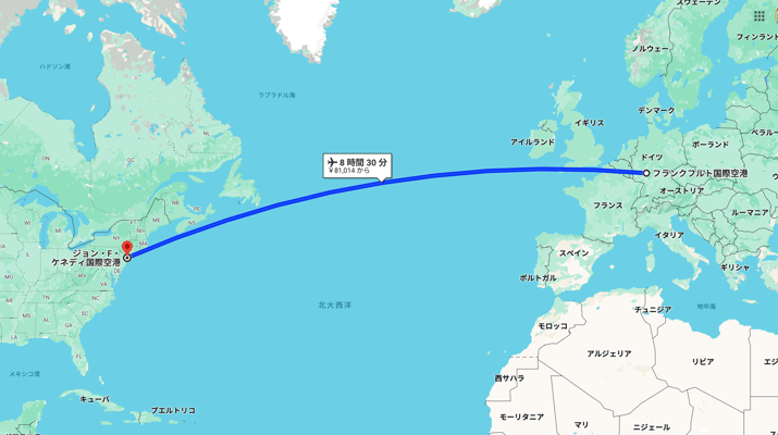 まず、ドイツ→アメリカの移動について。『ヨーロピアンオープン』開催地、ドイツのフルダからバスと電車(約1時間)でフランクフルト空港へ。そこから飛行機で大西洋を渡りました。