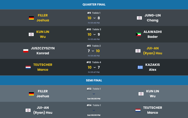 ジョシュア・フィラー(ドイツ) vs 呉坤霖(ウークンリン。台湾)