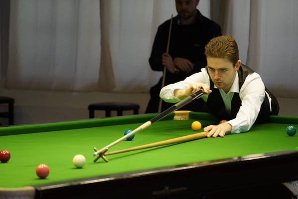 2:帽子をかぶってスヌーカーをプレー。オーストリアのクリスマスオープン(ハウストーナメント)。2017年頃
