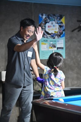 「今まで複合施設で何回か一緒にやりました。ビリヤードサイトの記事を見て内容に興味を持って初めて参加しました。6歳だとまだそんなにちゃんと撞けないですけど、娘も楽しんでいたようなので良かったです」