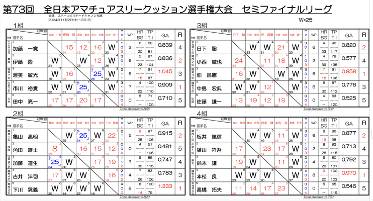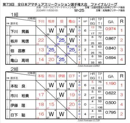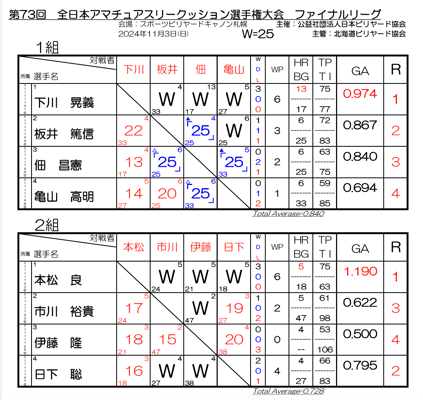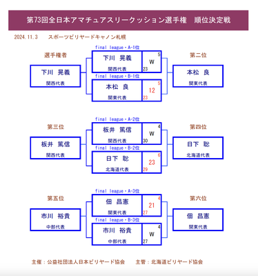 ↑ 画像・結果表提供:HBA(北海道ビリヤード協会)←こちらにフォトギャラリーもあります