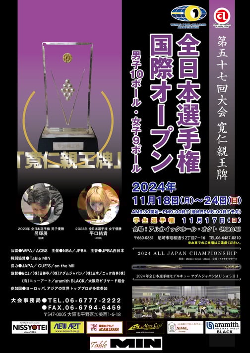 13都道府県で開催。アマチュアビリヤードリーグ。JPA