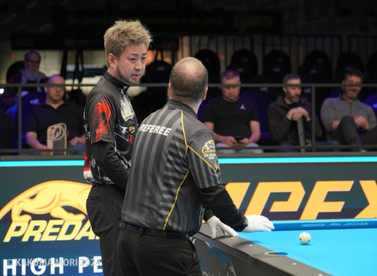 レフェリーはSNSなどで一方的にプレイヤーから問題点を指摘されることもあります。しかし、インタビューにもあるように彼らが個人で釈明することはありません。また、プレイヤーは自分が撞いていない時は椅子に座れますが、レフェリーは試合中ずっとテーブル脇に立ち、進行を注視しています。長時間にわたり高い集中力を維持しなければならないとてもハードな仕事です。審判団には心からの敬意と感謝の意を表したいと思います。