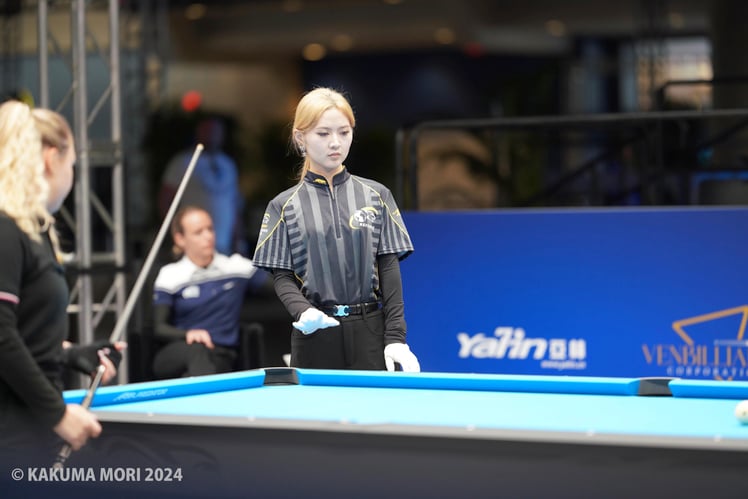 今回の『女子10ボール世界選手権』(プエルトリコ)では、試合前の説明なども比較的丁寧に行われていたようです。プレイヤーが10番を入れた後、レフェリーがテーブル上に手を広げ、プレイヤーがボールに触らないように(=手球が動きを止める前にポケットから的球を取り出さないように)するという工夫も見られましたし、特に大きな問題は起きていませんでした。