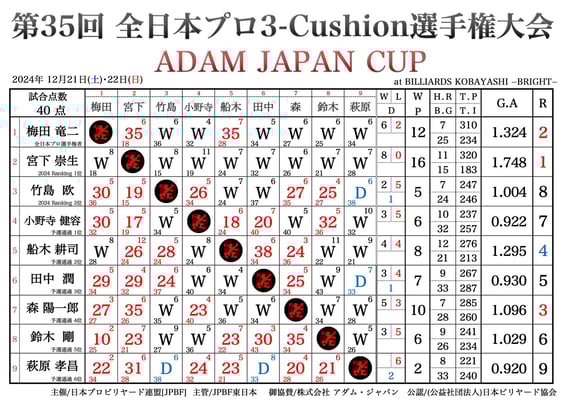 9名・40点ゲームの総当りリーグ戦。