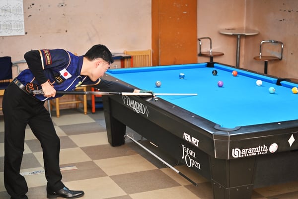 林:はい、プロ入りしてから他のプロの方々にもよくしていただいていますし、だいぶ慣れた感じはあります。2024年は……悪くはなかったと思います。トータルで見て70点ぐらいですかね。国内の大会は全て出て、決勝日(ベスト16~)も3回撞いたのかな(『関西オープン』9位、『北陸オープン』5位、『GPE-6』9位)。海外にも2回行けて、『ACBS 9ボールアジア選手権』(台湾開催)ではベスト16まで行けたので少し自信にもなりました。