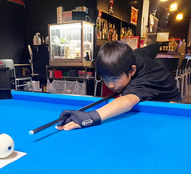 湯山:小学4年生の時、昔のアニメや映画でビリヤードのシーンを見て、カッコ良くて面白そうと興味を持ちました。その後、宿泊したホテルで実際にビリヤードを体験して魅力に引き込まれ、帰宅した日から『SRaSH』に通い始めました。