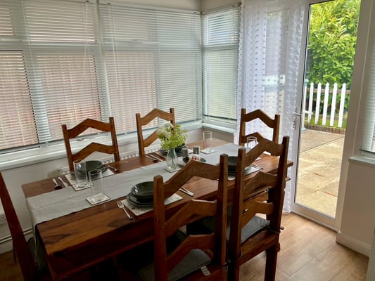 今回の宿は2階建の1軒家。1階にキッチン、ダイニング、リビングルームが独立してあり、書斎のような部屋にサンルーム、庭まであります。2階にはバスルームの他に寝室が3部屋あるので結構大きなお家です。