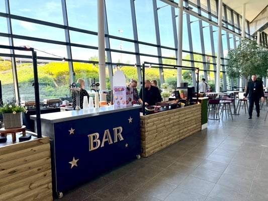 広々とした会場ロビーには昨年と同じく公式マーチャンダイズのブースやカフェ・軽食のブースがありました。