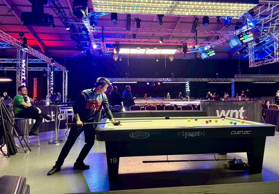 現状、日本でマッチルーム(WNT.)メジャー大会のテーブルと同じようなコンディションを作るのは本当に難しいと感じます。チャイニーズ8テーブルとまでは言いませんが、それに近しい感覚があり、日本の「普通」のコンディションとは比べ物になりません。単純に攻守の判断も変わりますし、セーフティに求められる質も変わります。加えて9オンフットのブレイクボックスなのでゲーム性も変わってきます。