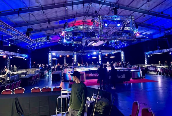 大きな会場に暗めな照明、そしてメロウなBGMが流れていてマッチルーム(WNT.)のメジャー会場は「特別なステージ感」が演出されており、本当にテンションが上がります。この場所で優勝できたらさぞ気持ち良いことでしょう。